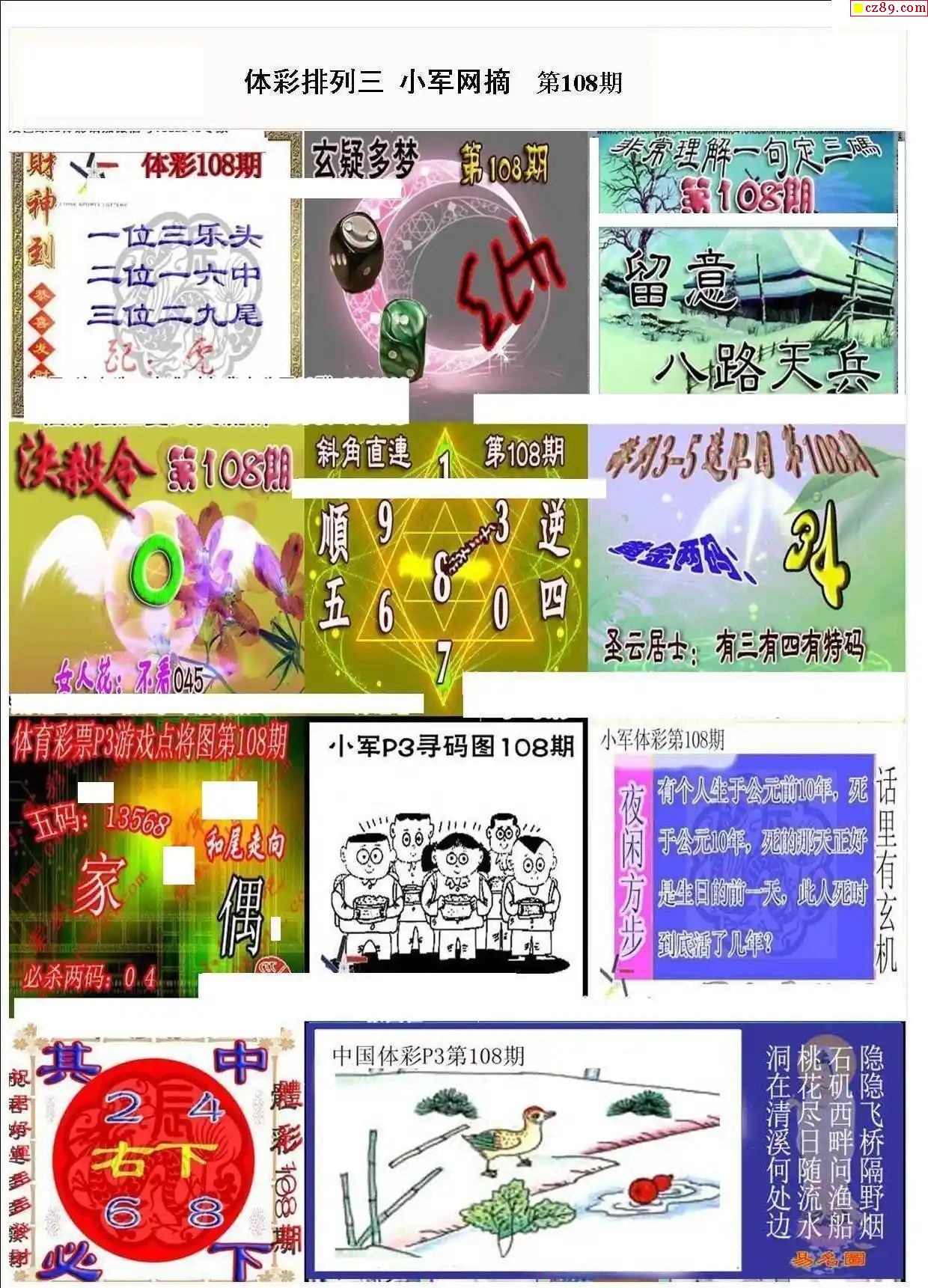 2024年108期牛彩网体彩P3画迷图谜汇总分享