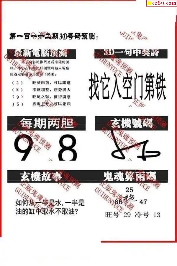 天下奖王2025345期3d图谜