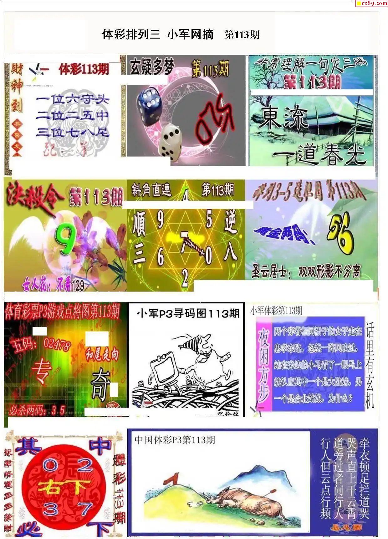 2024年113期牛彩网体彩P3画迷图谜汇总分享