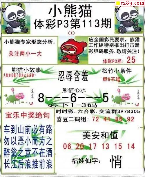 小熊猫2025330期体彩P3图谜