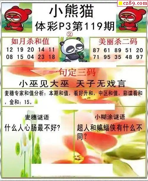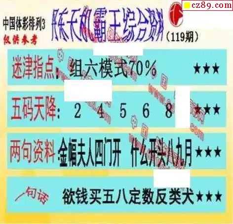 2024年119期牛彩网体彩P3画迷图谜汇总分享