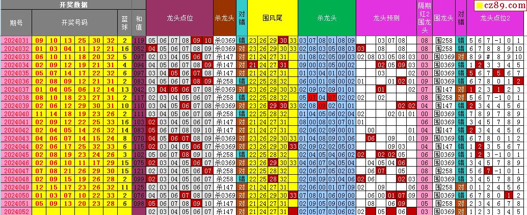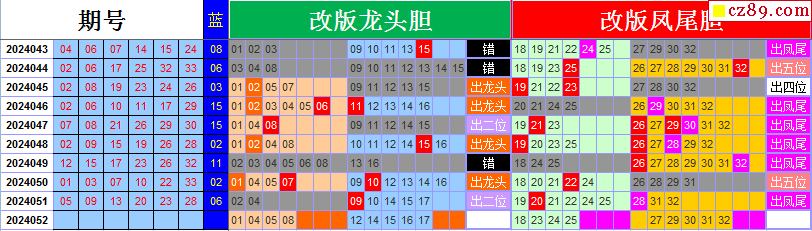 24年052期飞向阳光福彩双色球预测图表汇总