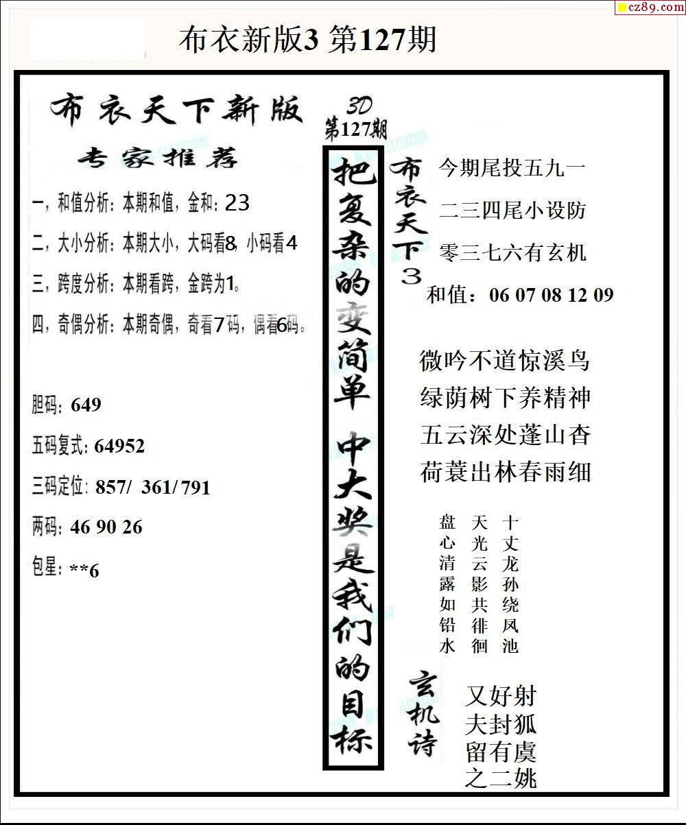 2025330期真精华布衣123456