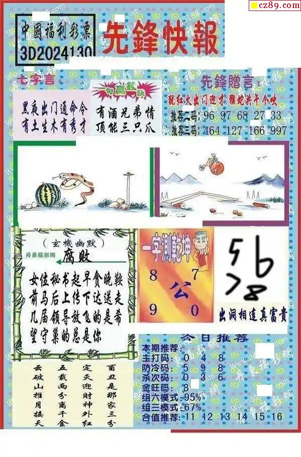 牛彩版3D字谜彩报图26年018期打印版