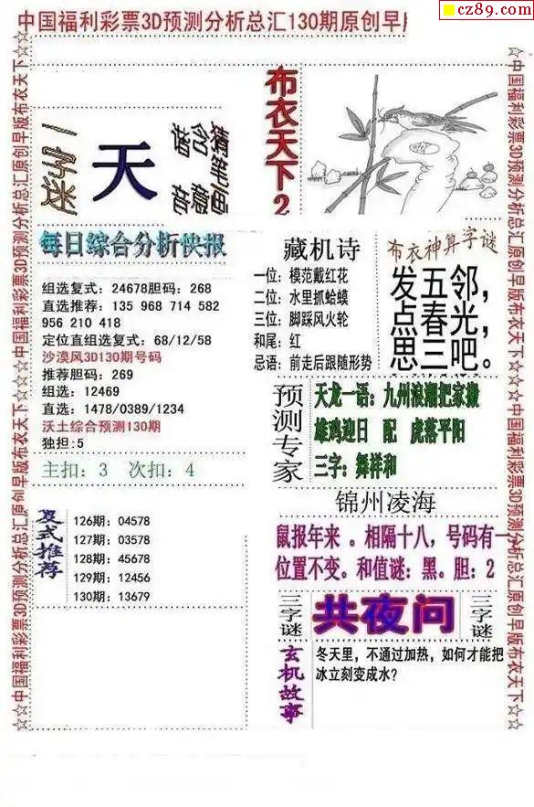 2026018期福彩3D图谜汇总