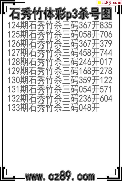 25年327期石秀竹体彩p3杀号图