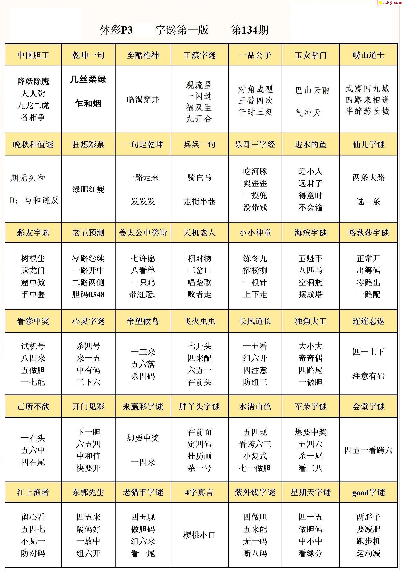 2024年134期牛彩网体彩P3画迷图谜汇总分享