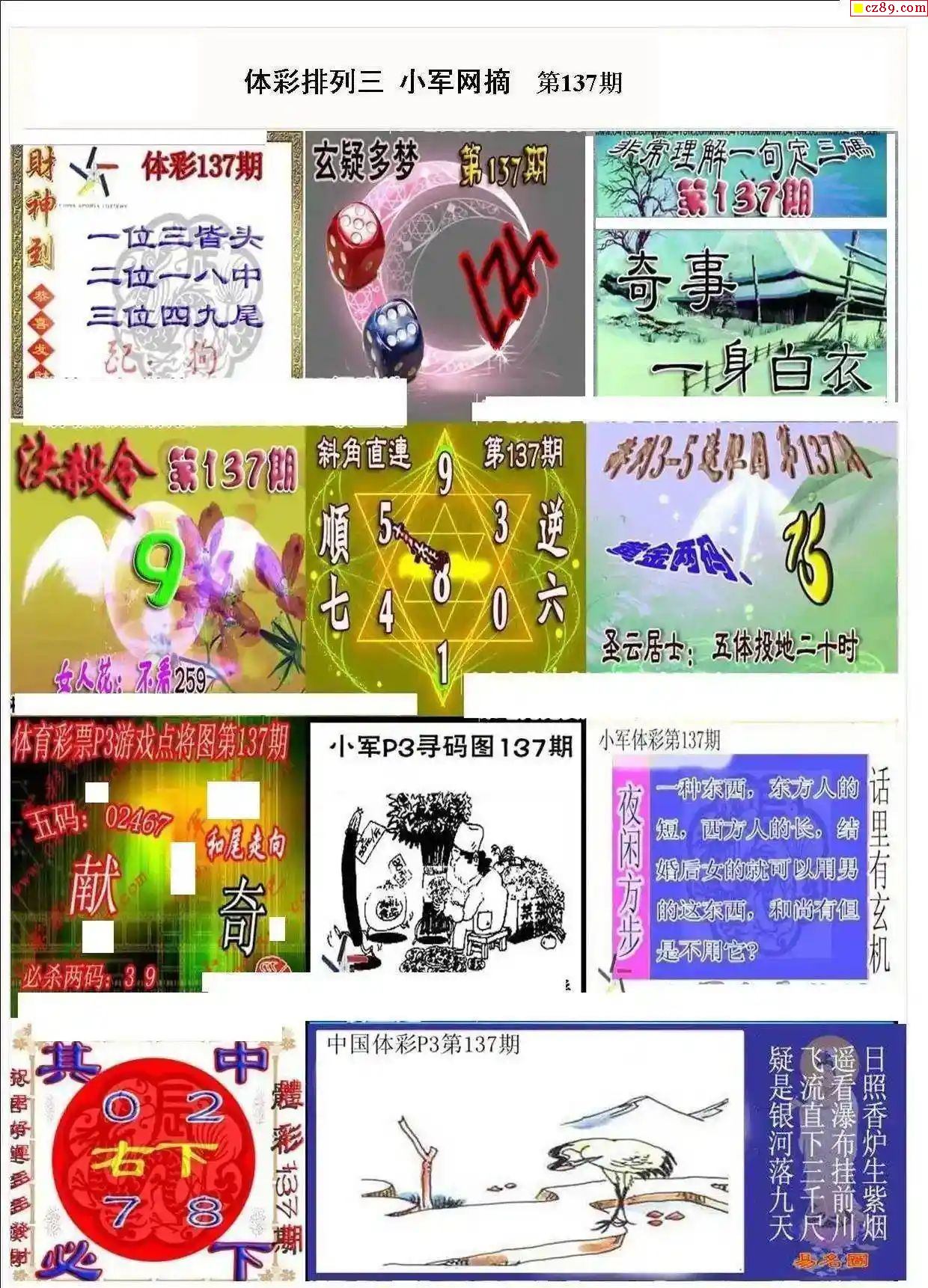 2024年137期牛彩网体彩P3画迷图谜汇总分享