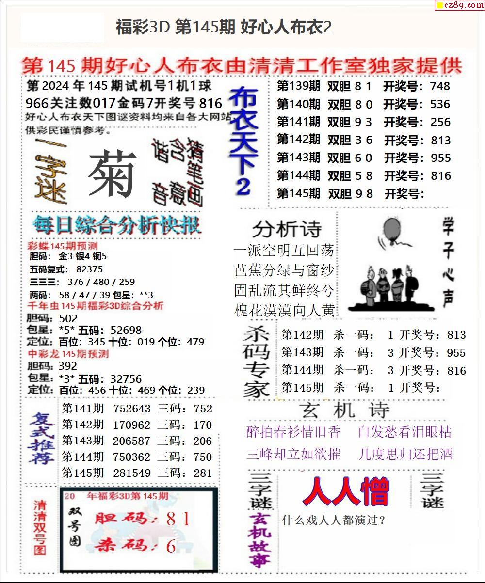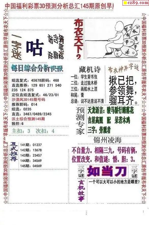 2024145期3d字谜图谜总汇