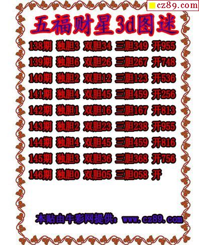 2025327期3d图谜汇总(五)