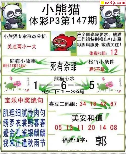 小熊猫2025331期体彩P3图谜