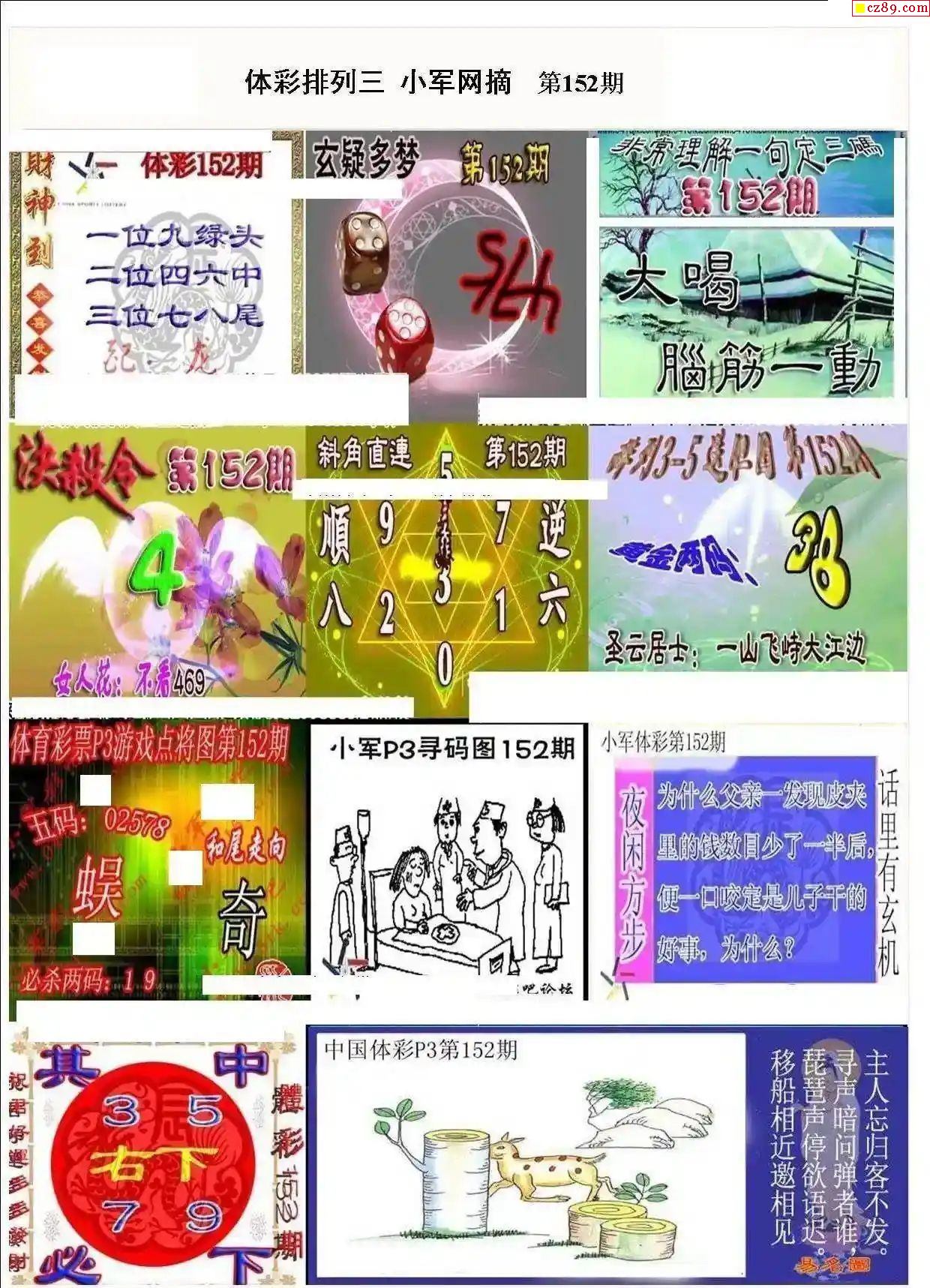2024年152期牛彩网体彩P3画迷图谜汇总分享
