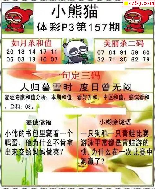 2024年157期牛彩网体彩P3画迷图谜汇总分享