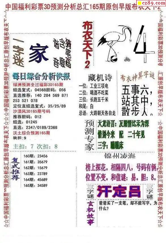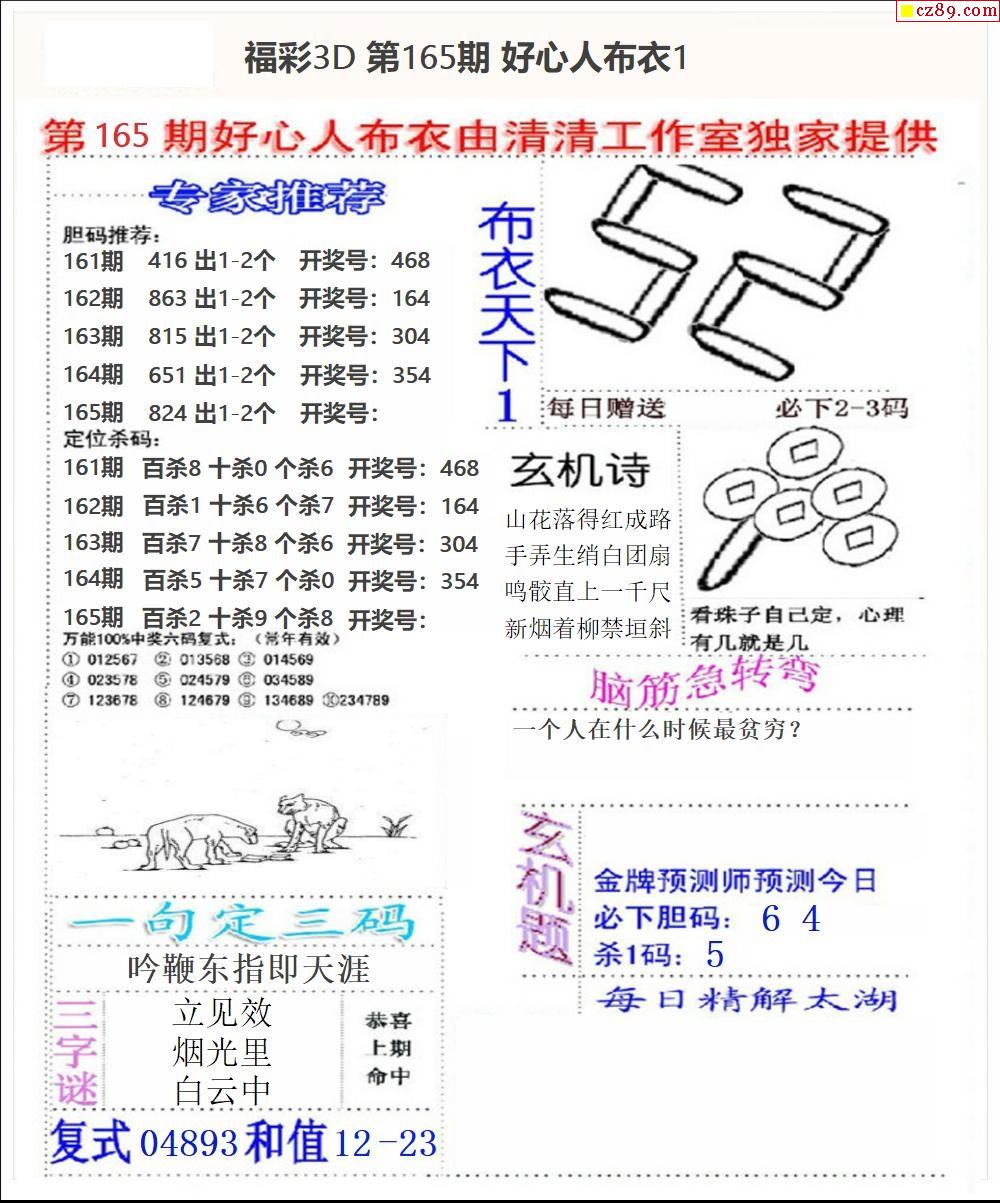 2024165期3d字谜图谜总汇