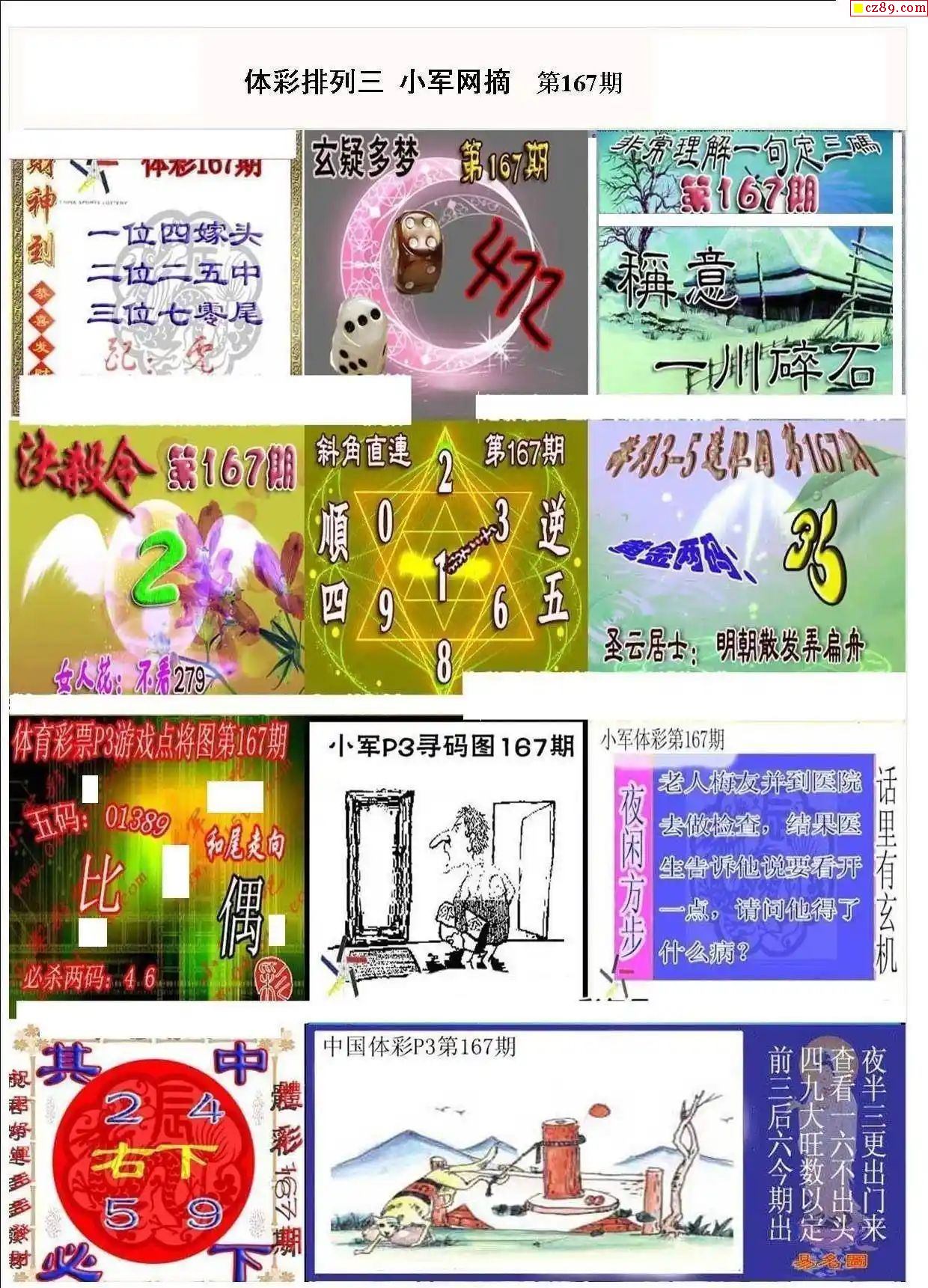 2024年167期牛彩网体彩P3画迷图谜汇总分享