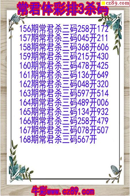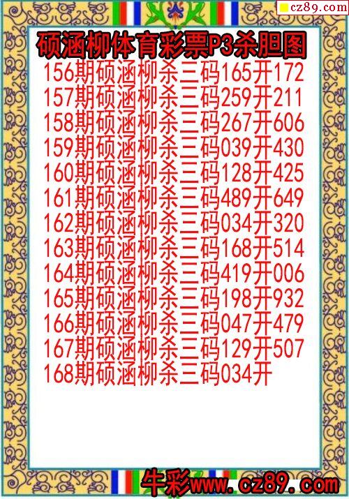 2024年168期体彩P3胆码杀码原创图总汇