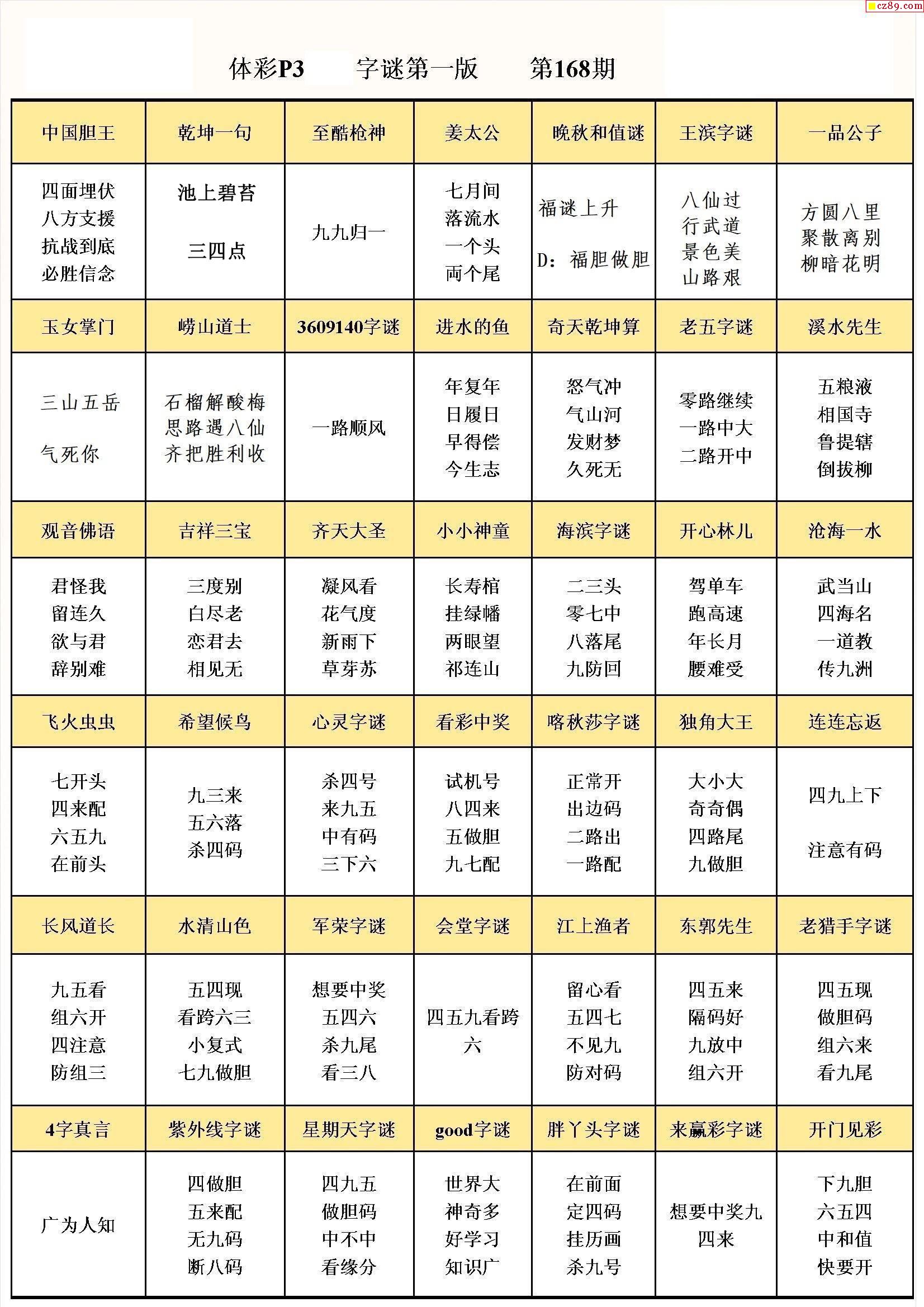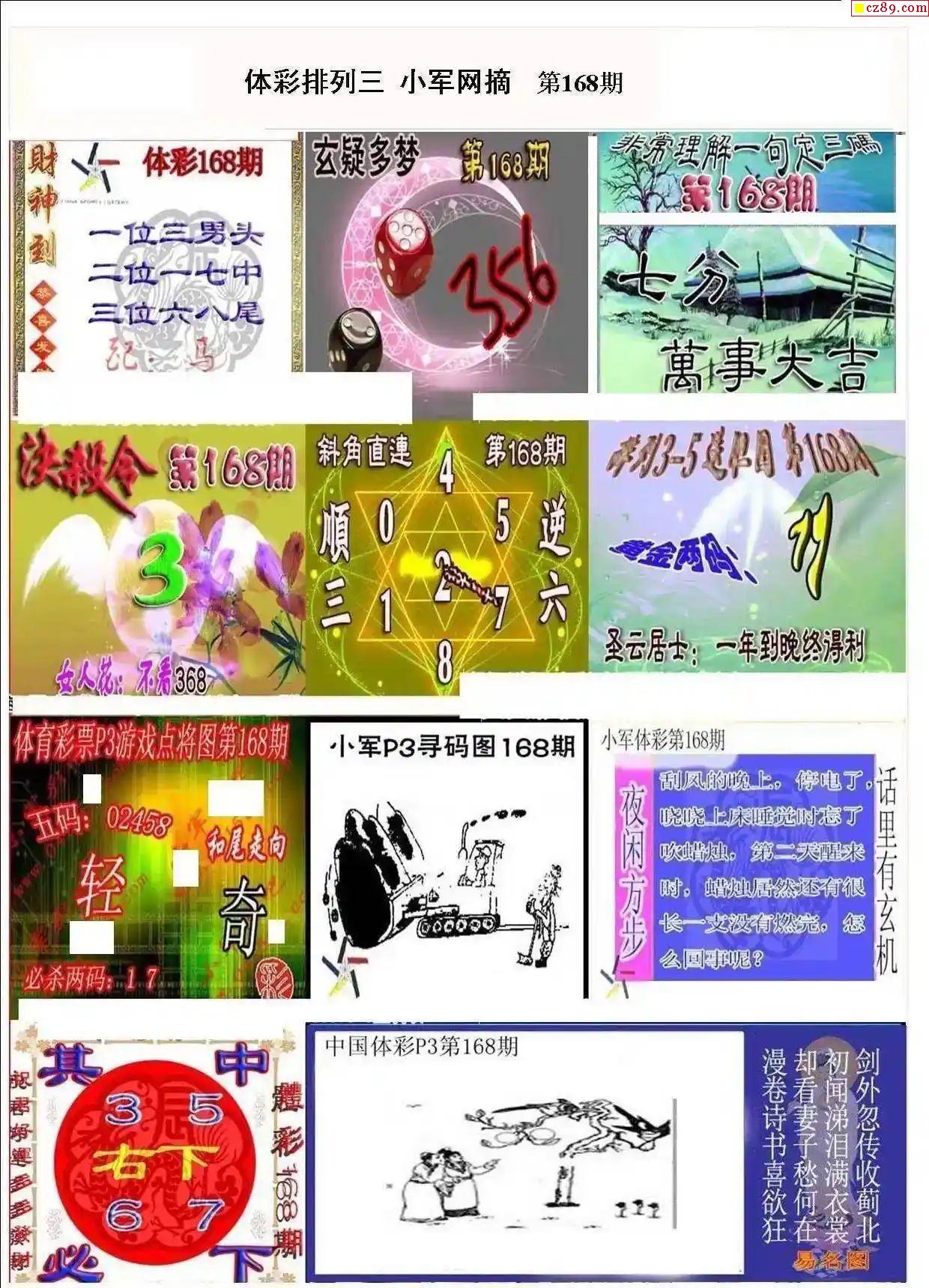2024年168期牛彩网体彩P3画迷图谜汇总分享