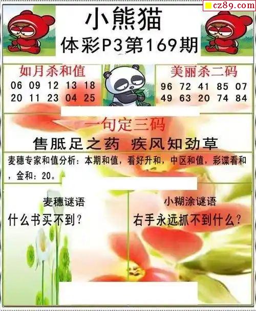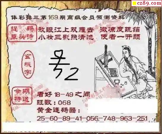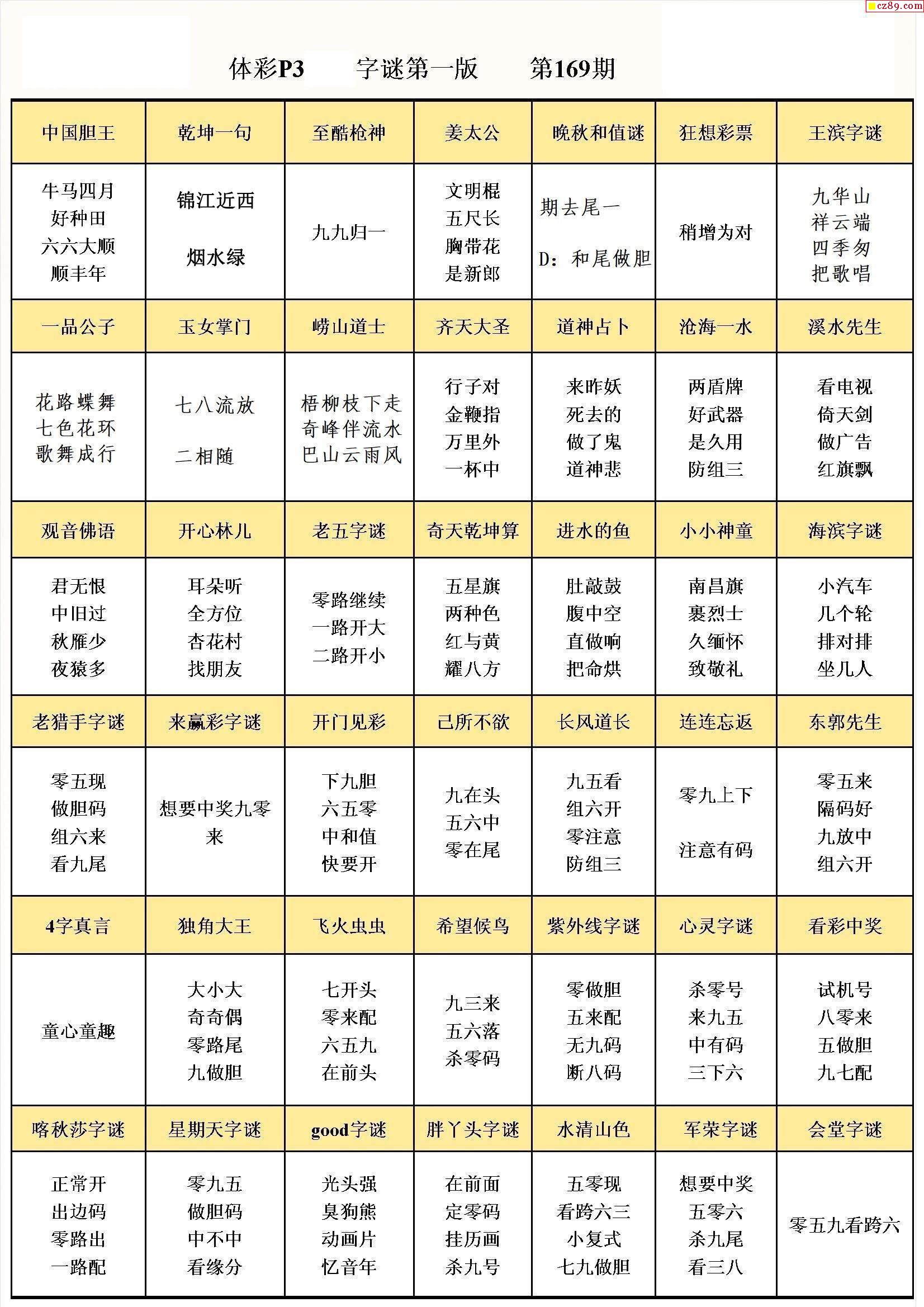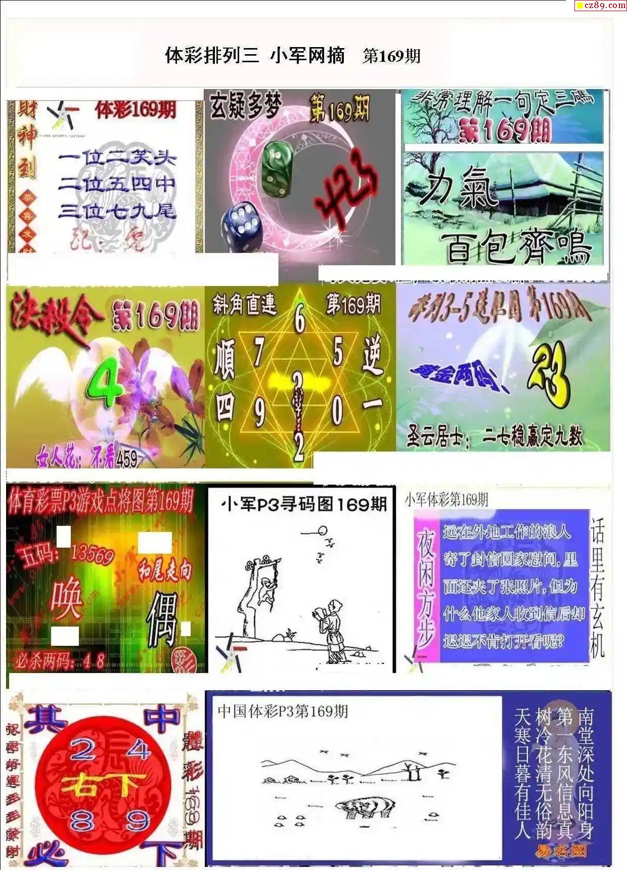 2024年169期牛彩网体彩P3画迷图谜汇总分享
