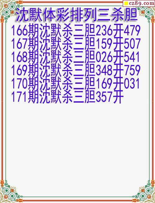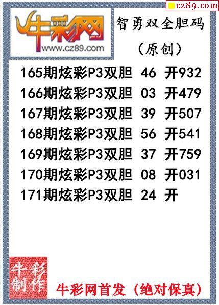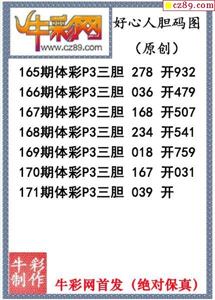 2024年171期体彩P3胆码杀码原创图总汇