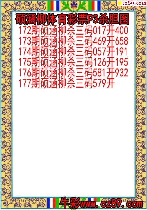 2024年177期体彩P3胆码杀码原创图总汇