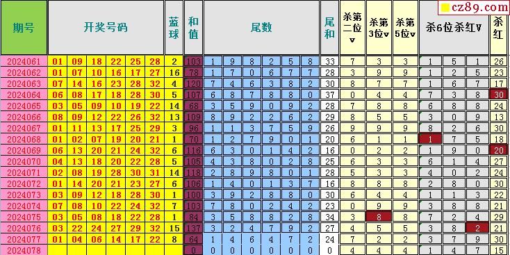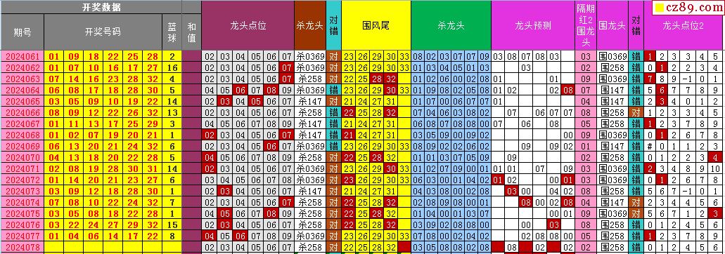 24年078期飞向阳光福彩双色球预测图表汇总