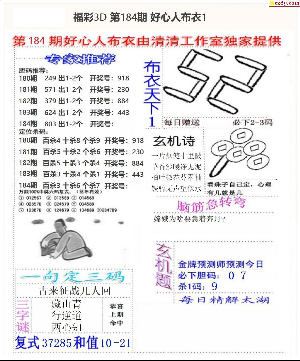 2024184期3d图谜汇总(五)