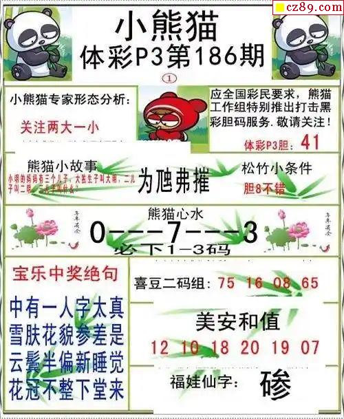 小熊猫2025330期体彩P3图谜