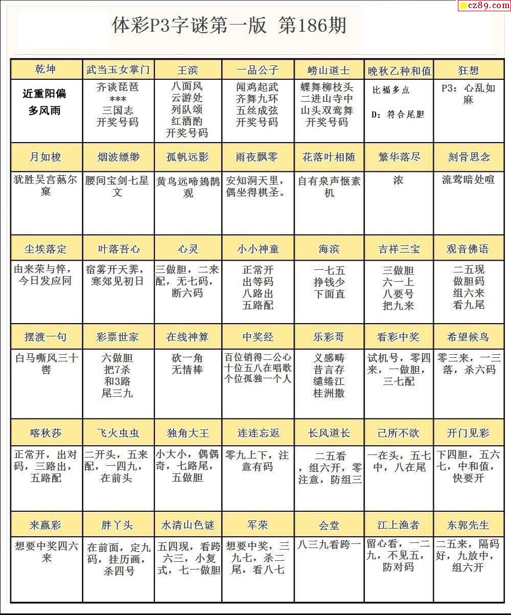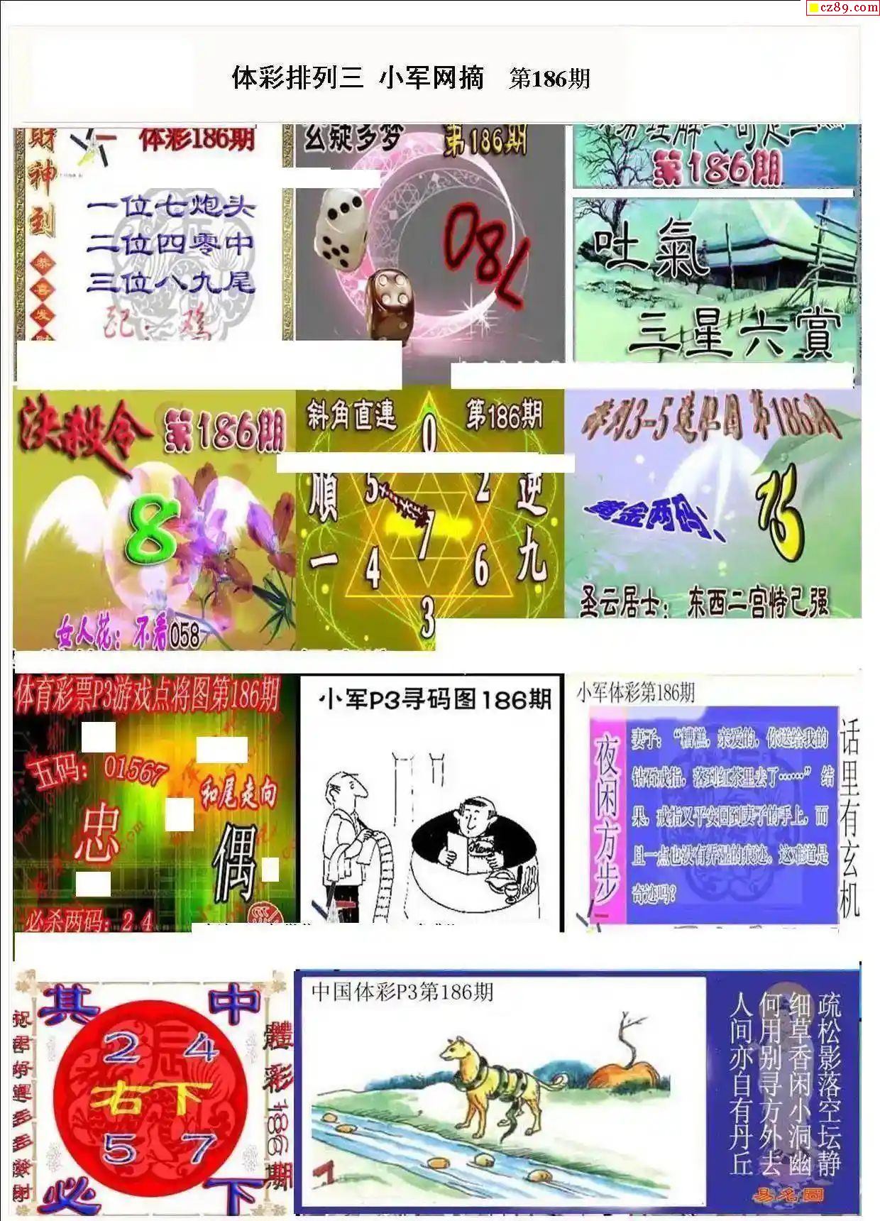 2024年186期牛彩网体彩P3画迷图谜汇总分享