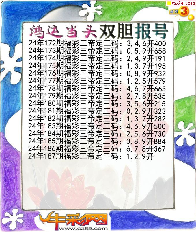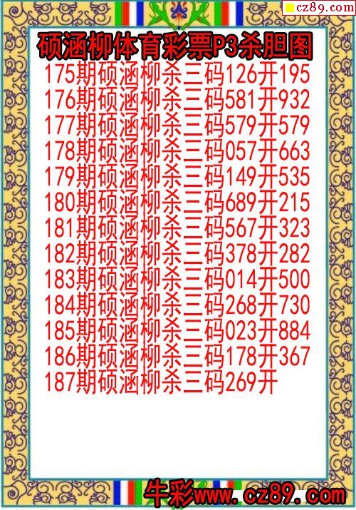 2024年187期体彩P3胆码杀码原创图总汇