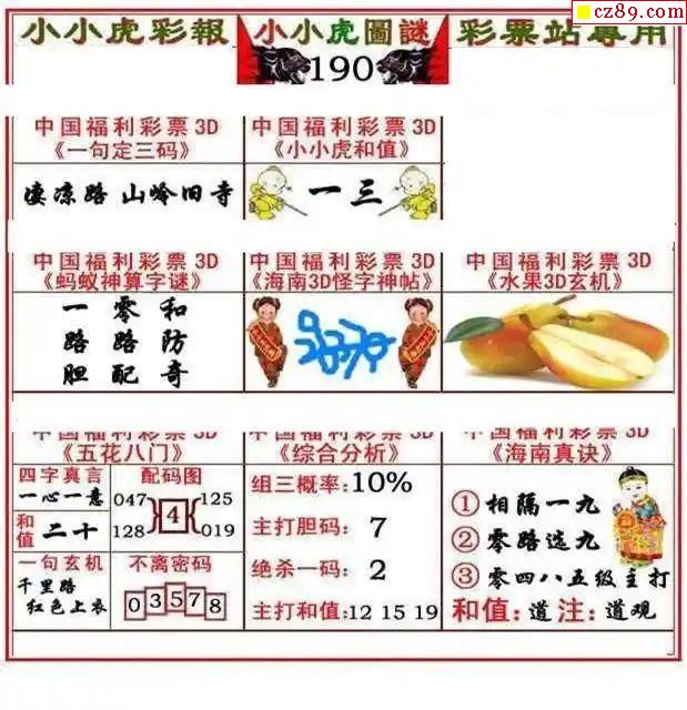 牛彩版3D字谜彩报图25年328期打印版