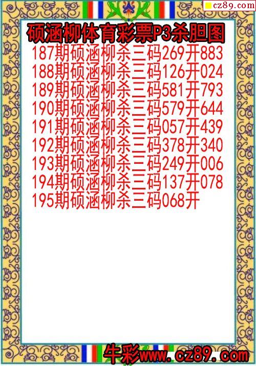 2025年327期牛彩网体彩P3画迷图谜汇总分享