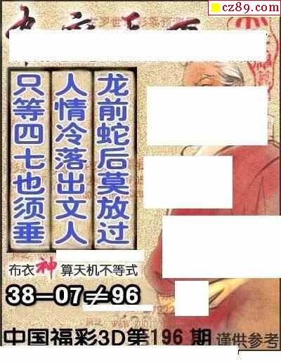 佐罗世家2024196期3d图谜
