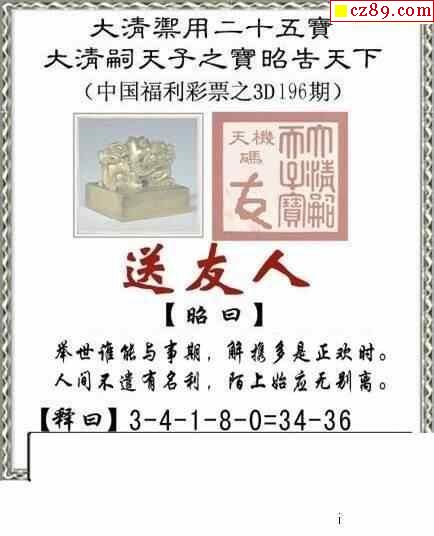 真心意图2024196期3d图谜