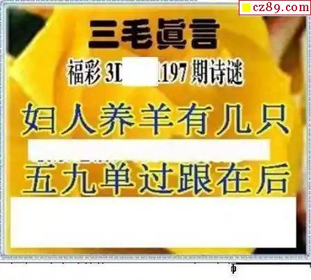 真三毛2024197期3d图谜