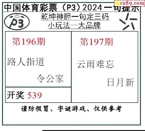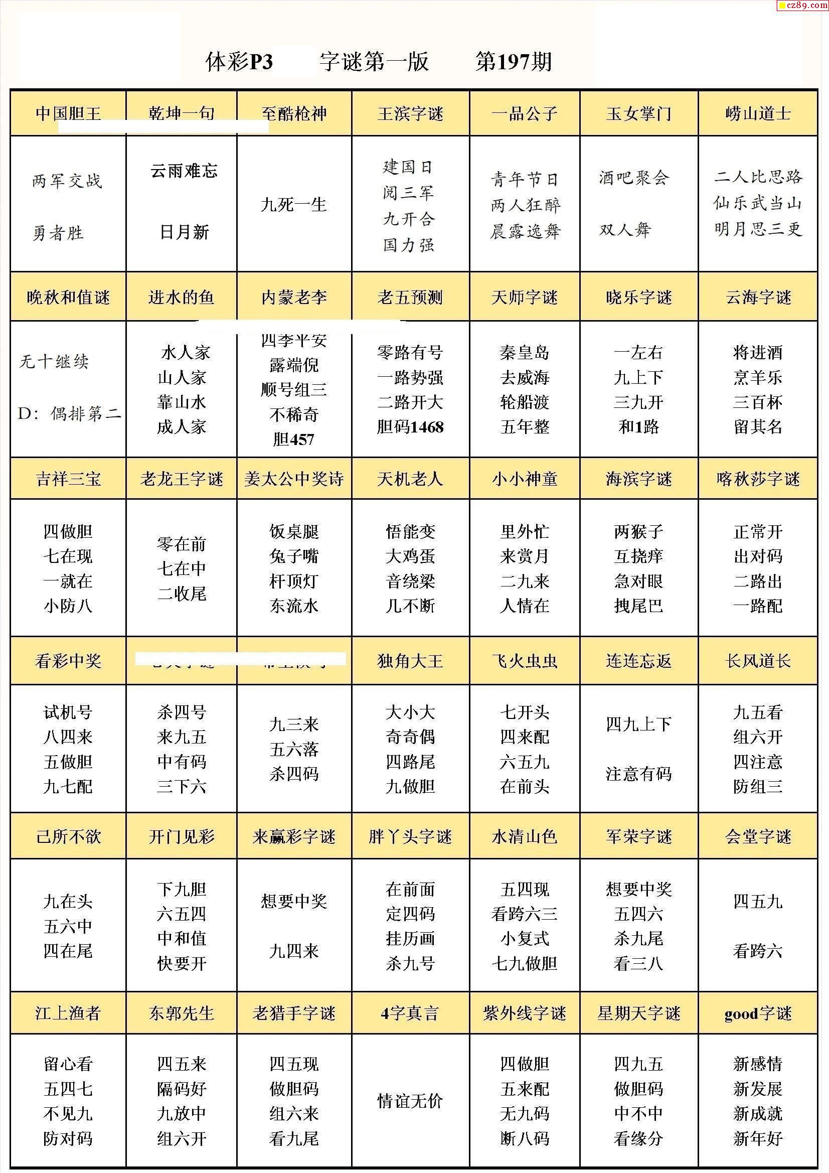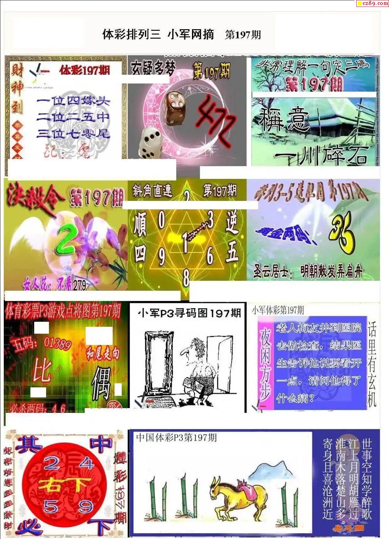 2024年197期牛彩网体彩P3画迷图谜汇总分享