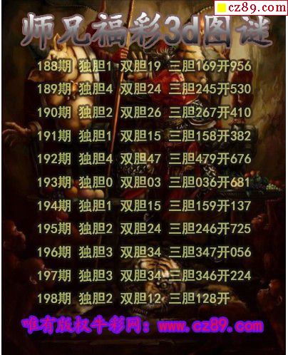 2024198期3D图谜汇总(九)