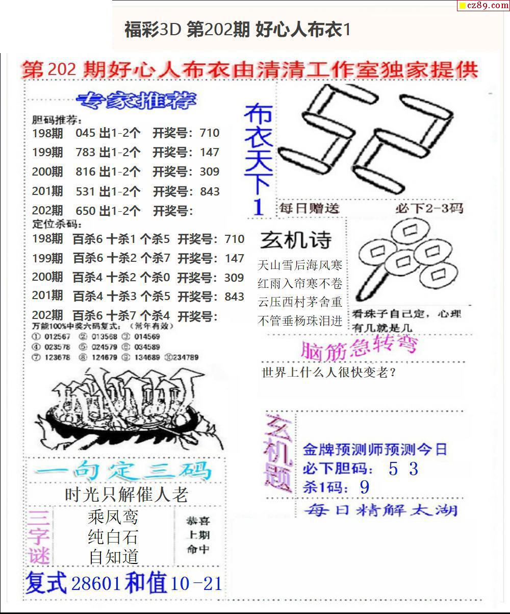 福彩3D2025331期彩赌侠一句定三码字图谜