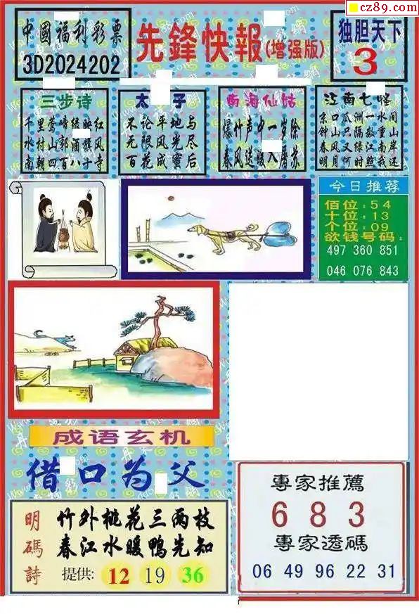 福彩3D2025333期 祁连牧哥百财纳福胆码图谜推荐
