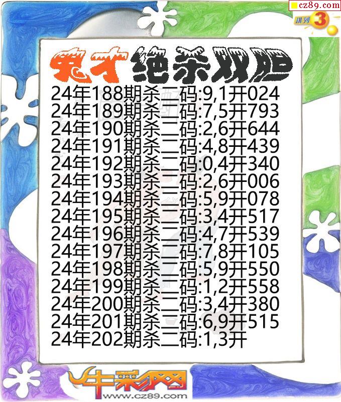 2024年202期体彩P3胆码杀码原创图总汇