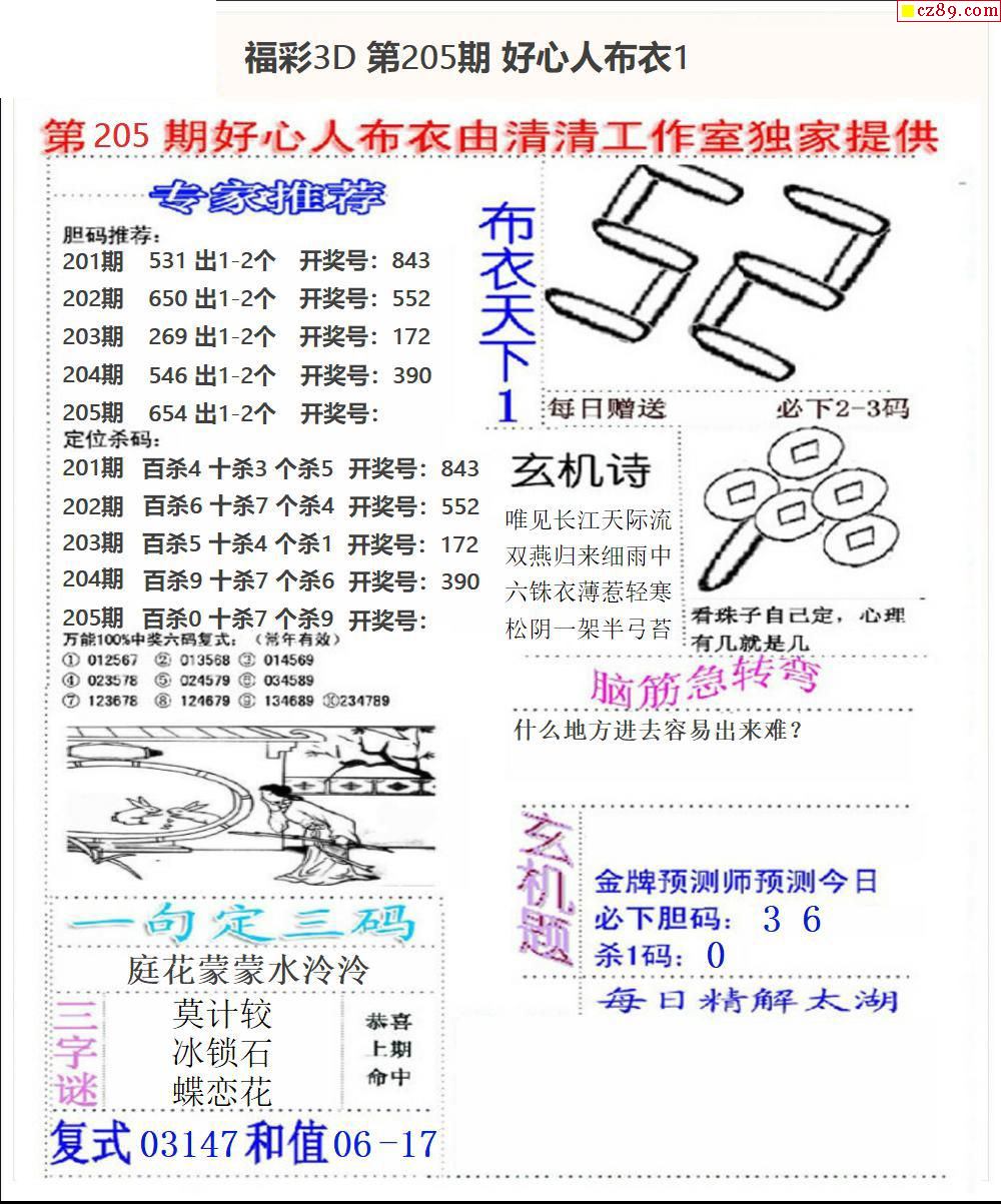 福彩3D2025335期 祁连牧哥百财纳福胆码图谜推荐