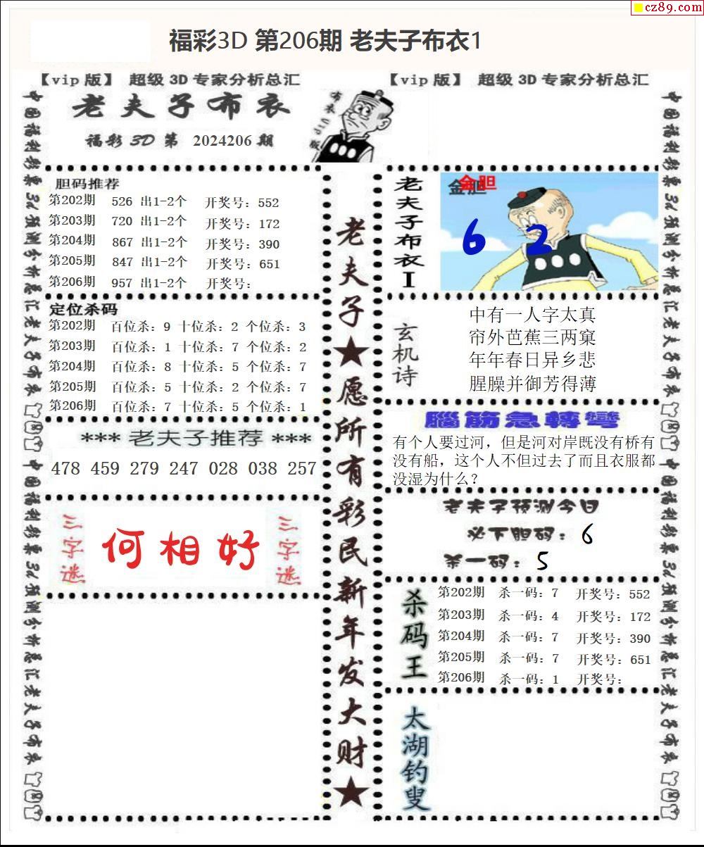福彩3D2025341期 祁连牧哥百财纳福胆码图谜推荐