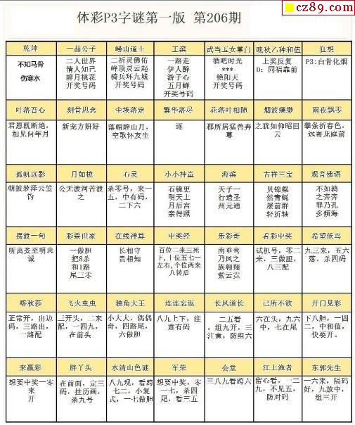 2024年206期牛彩网体彩P3画迷图谜汇总分享