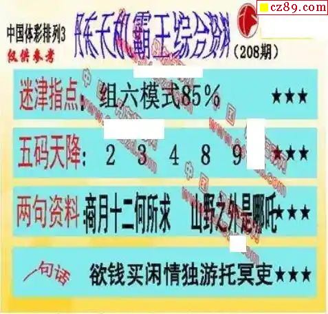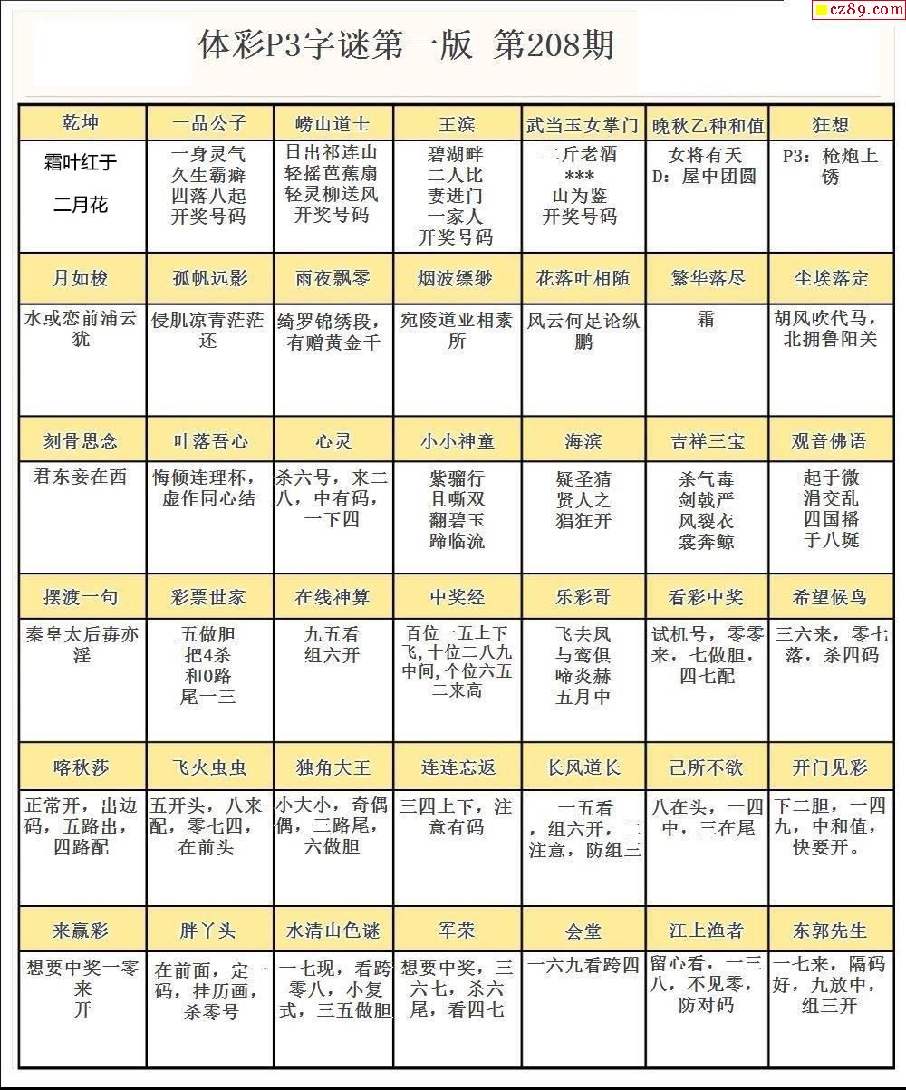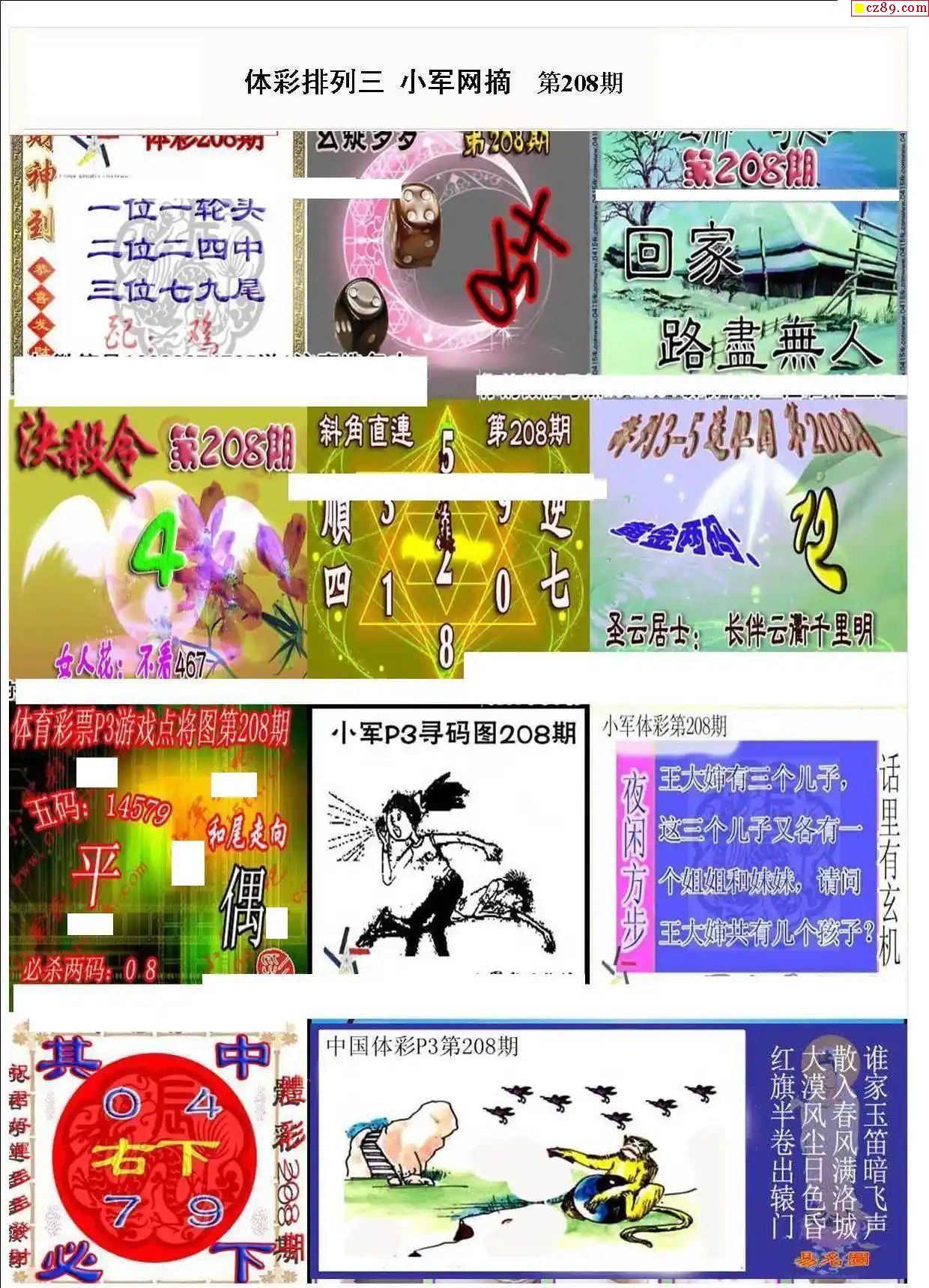 2024年208期牛彩网体彩P3画迷图谜汇总分享