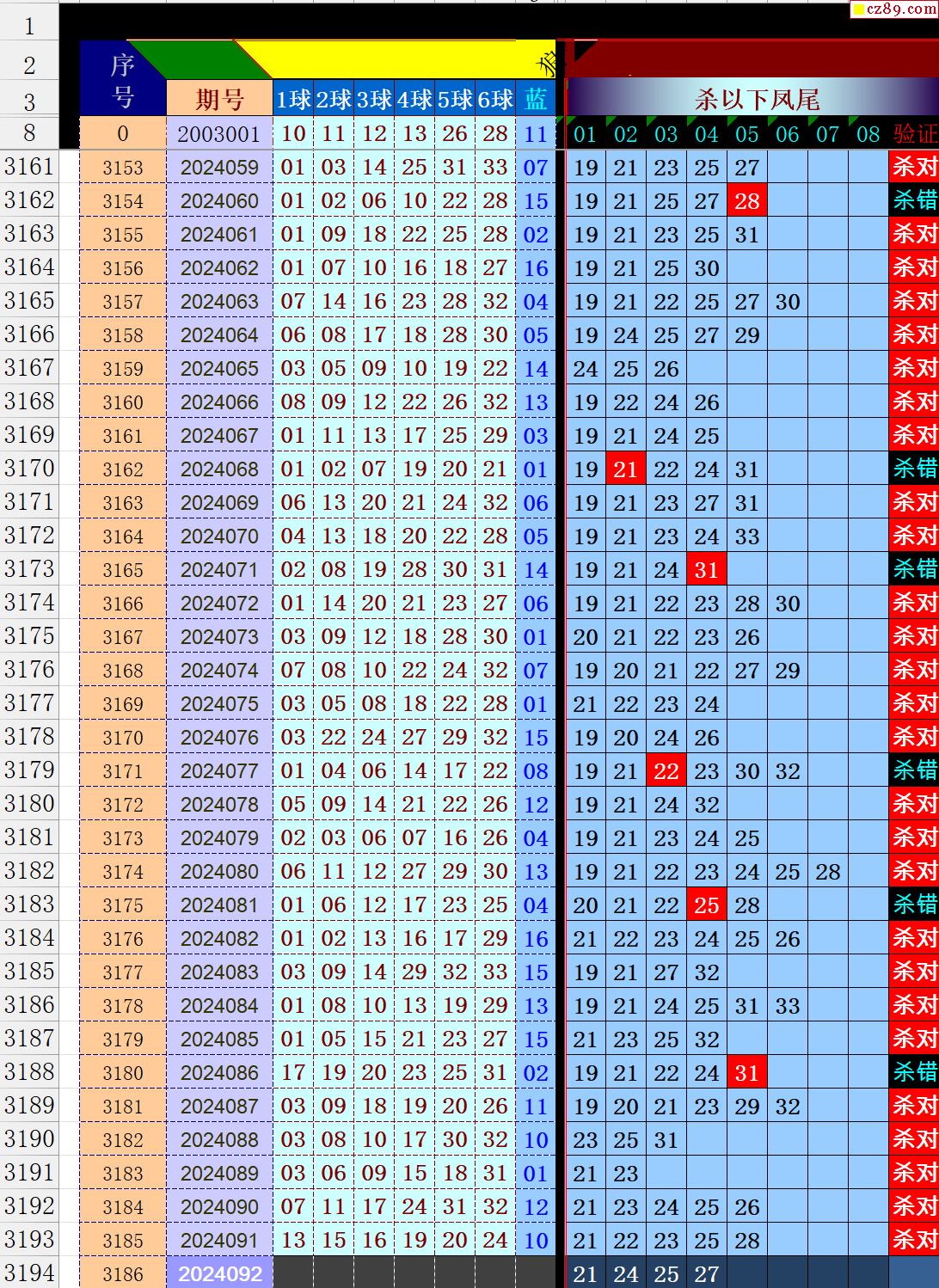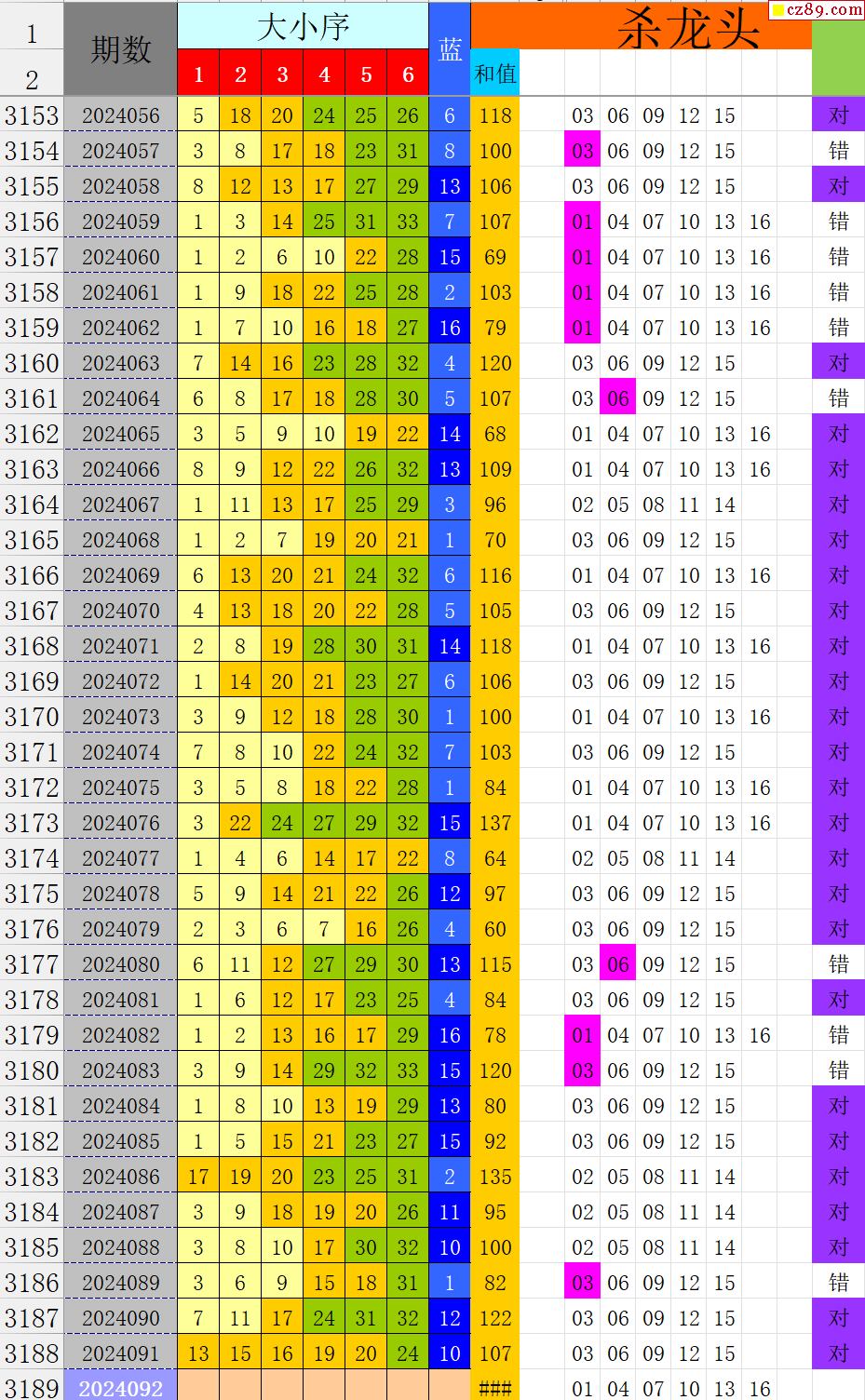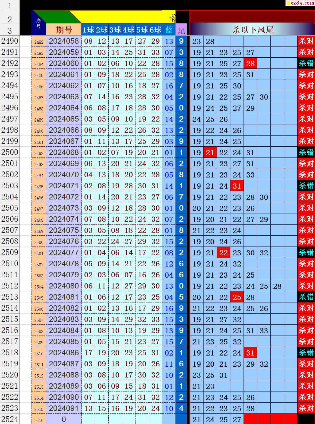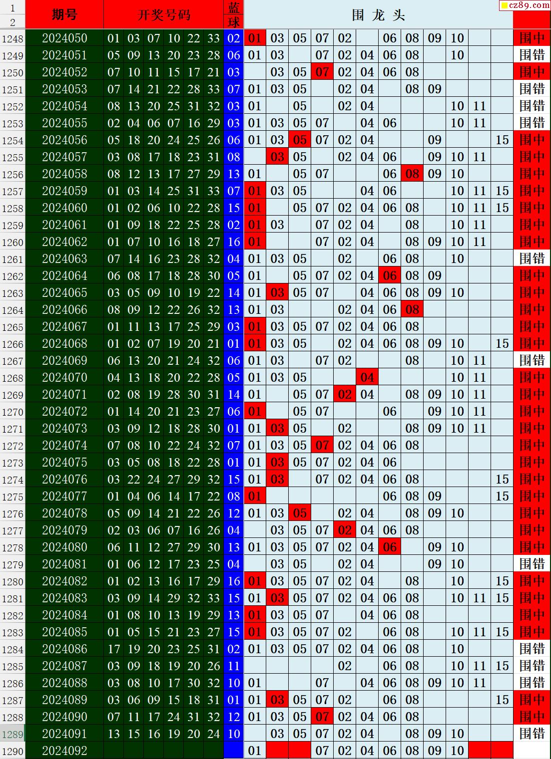 24年092期秋雨龙头凤尾走势图表