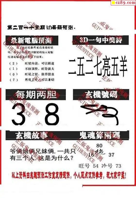 福彩3D2025332期 祁连牧哥百财纳福胆码图谜推荐