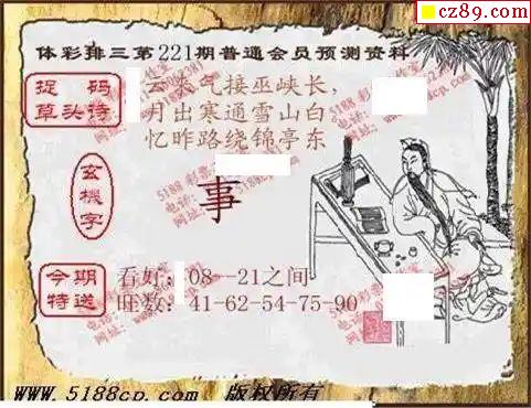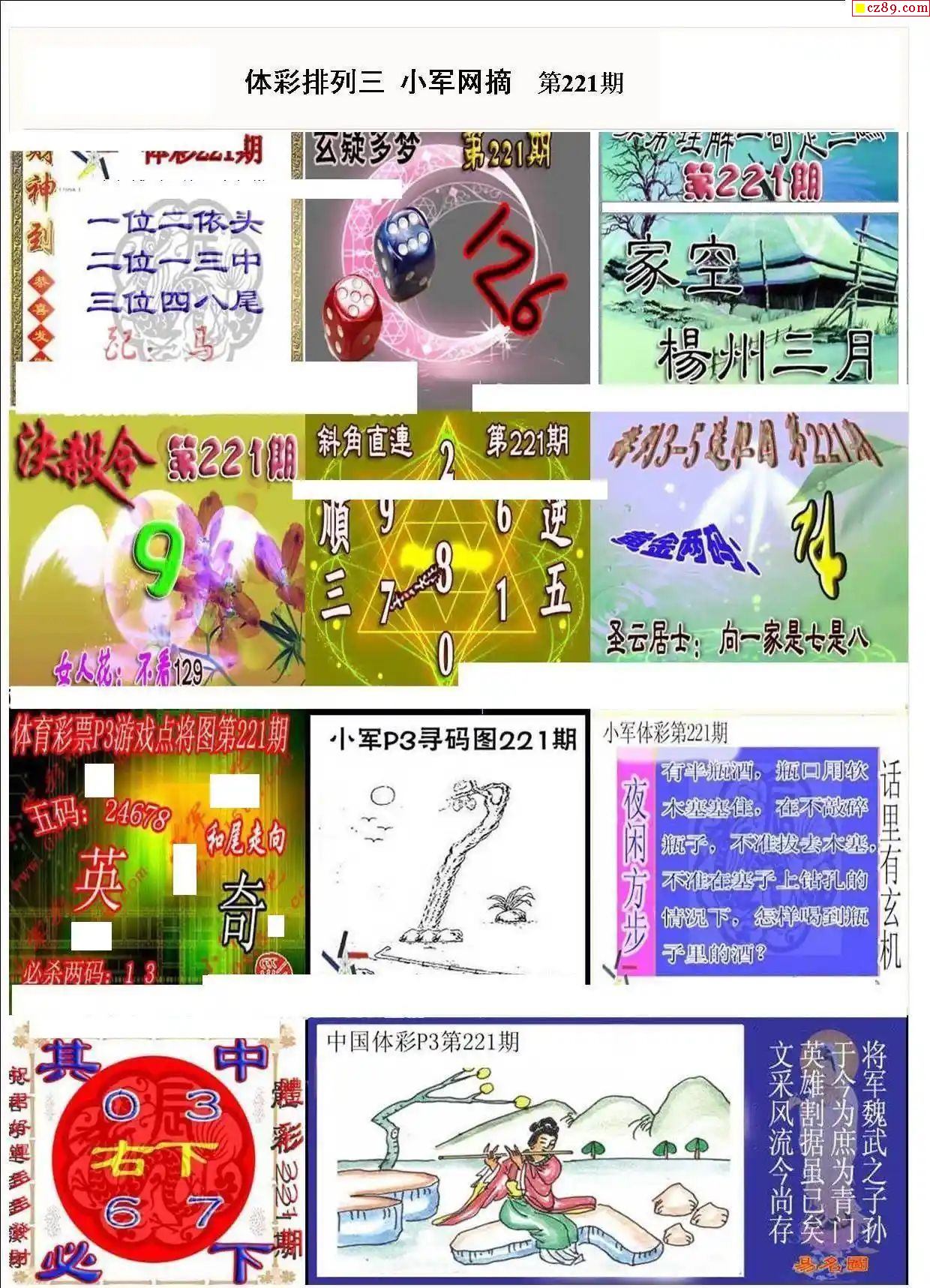 2024年221期牛彩网体彩P3画迷图谜汇总分享