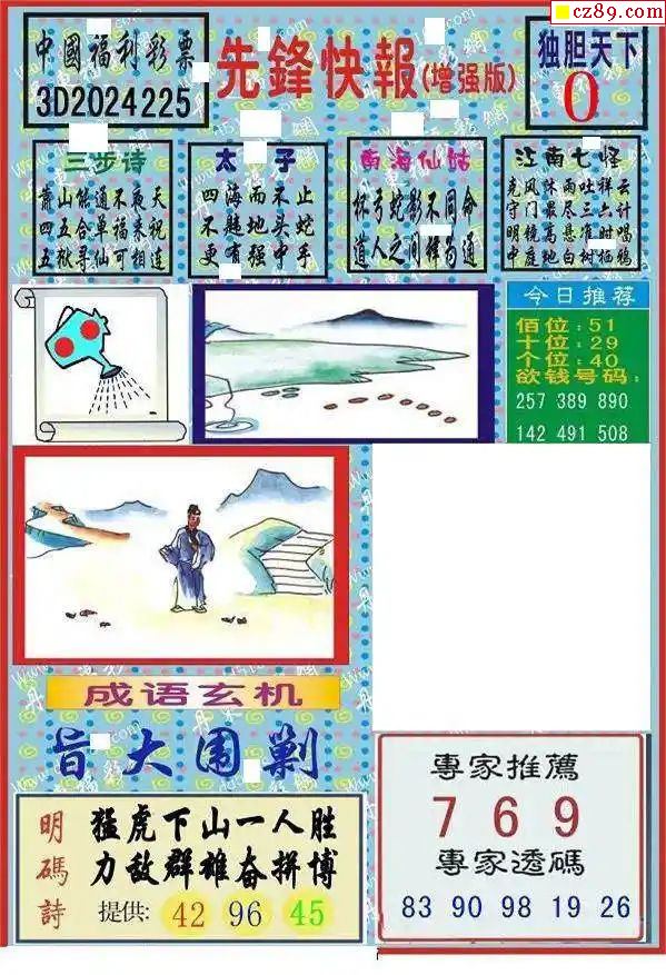 牛彩版3D字谜彩报图25年332期打印版