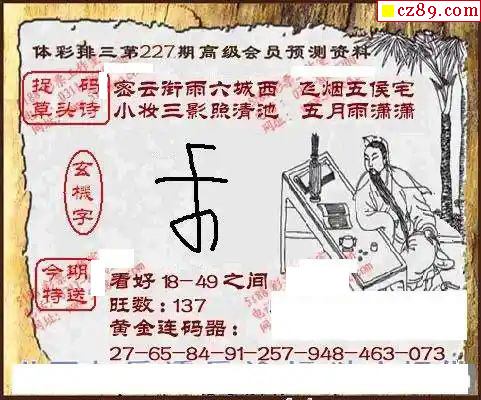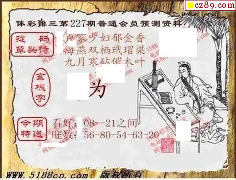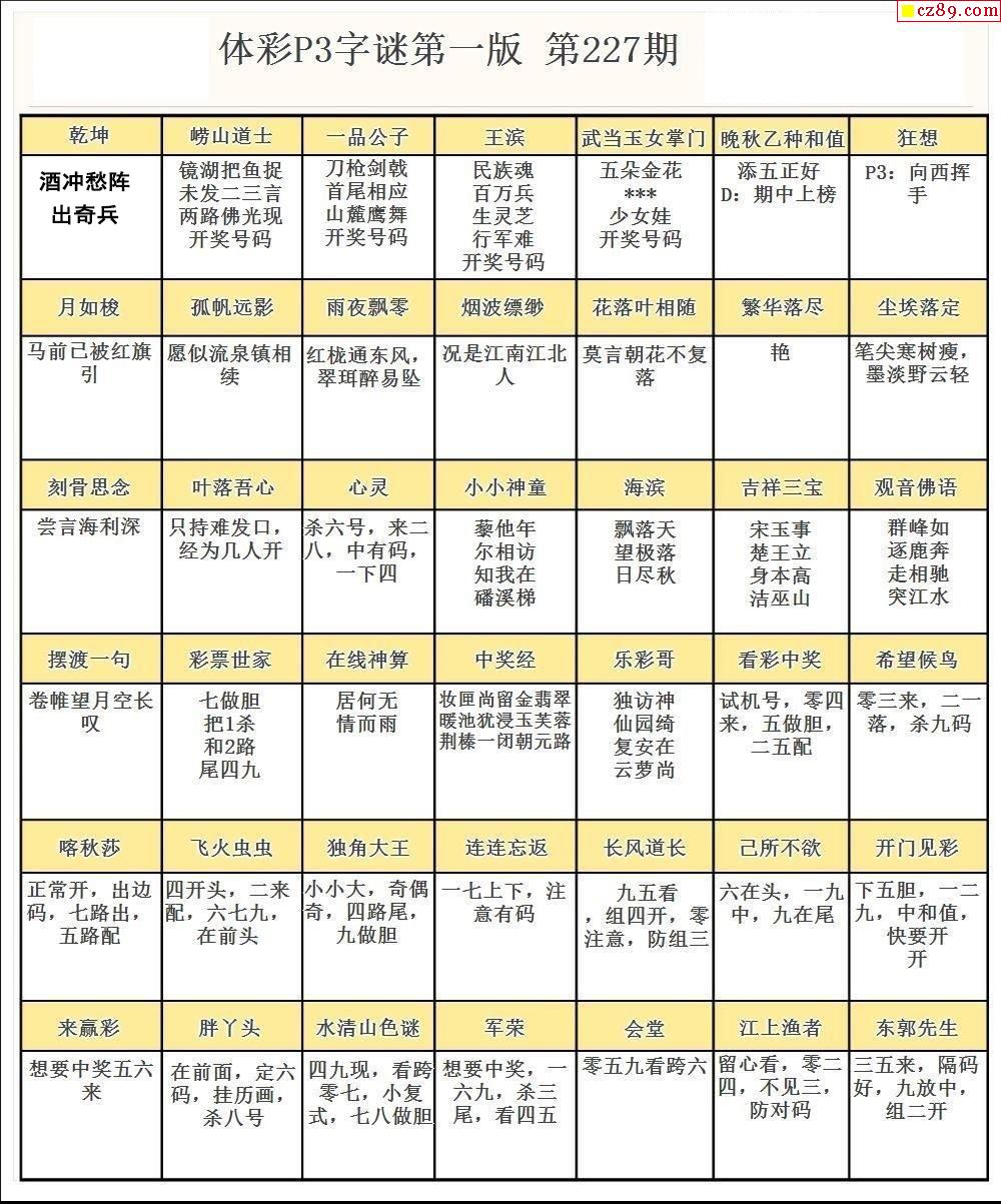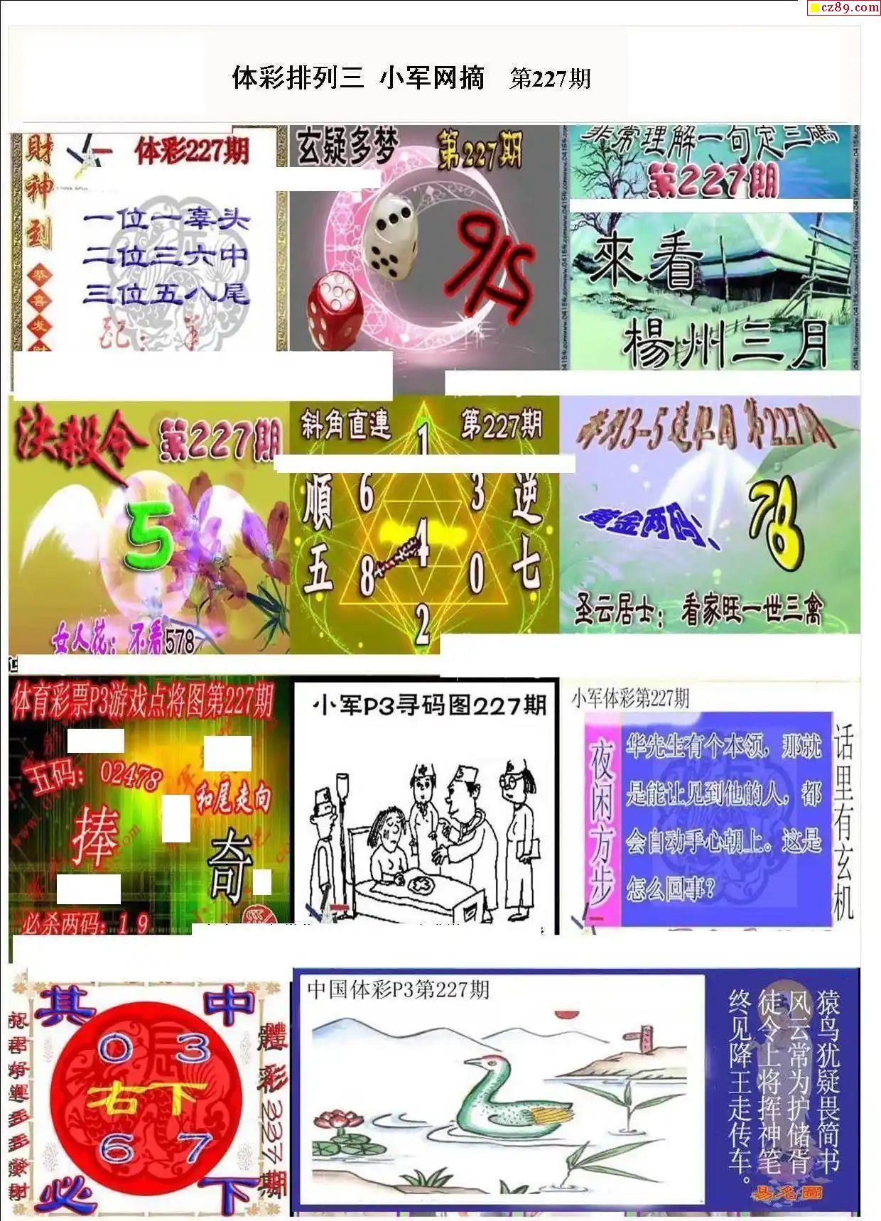 2024年227期牛彩网体彩P3画迷图谜汇总分享