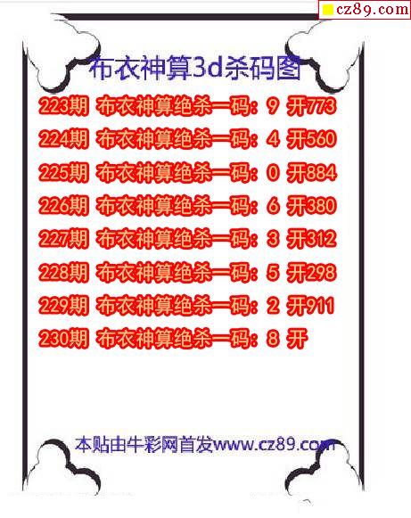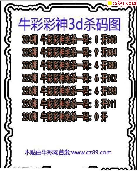 牛彩版3D预测彩报图26年020期打印版