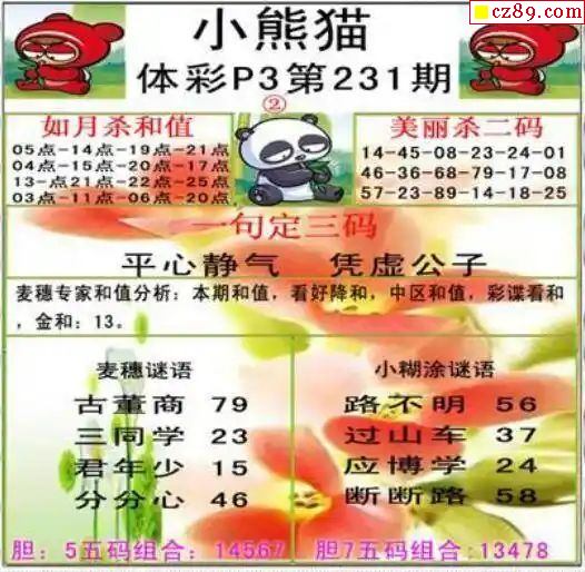 2024年231期牛彩网体彩P3画迷图谜汇总分享